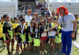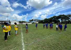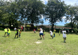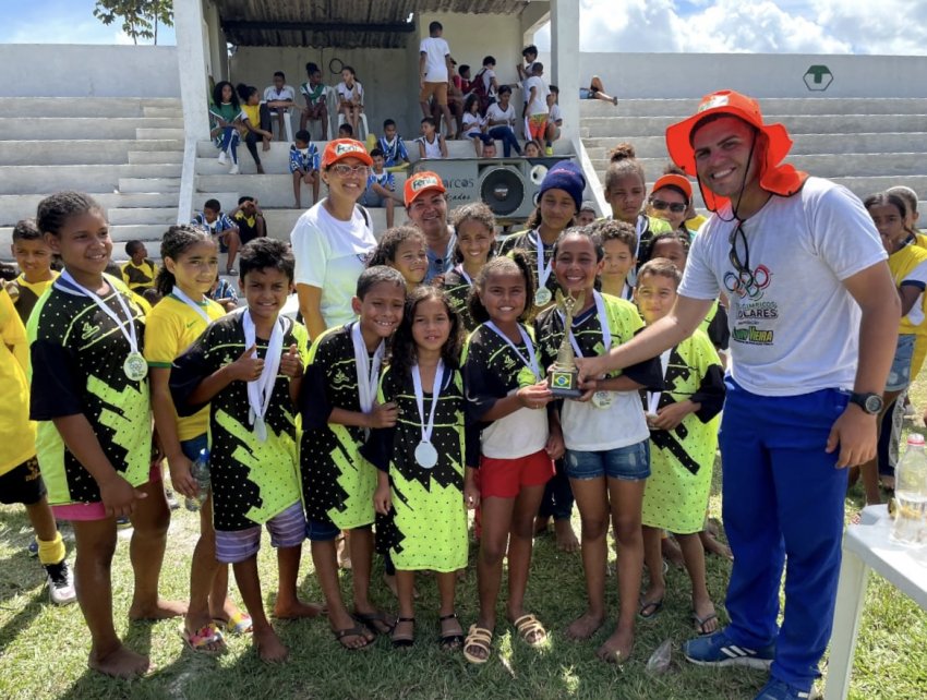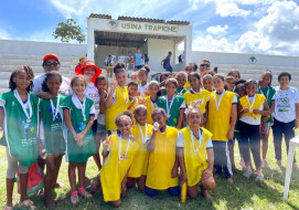 Ocorreu ontem pela manhã, no Grupo Escolar D. Neném, o Campeonato de Futebol que reuniu os alunos da Escola Sede, Jaguaré, Trapiche Velho e Jindaí. Foram 160 participantes, meninos e meninas entre 7 e 15 anos de idade, que vieram mostrar sua garra e brilhantismo com a bola.