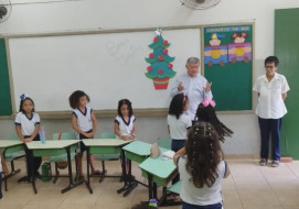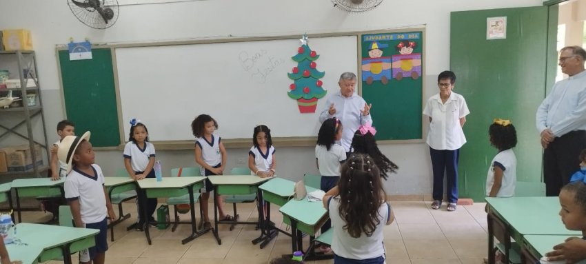 Três sacerdotes visitaram o Grupo Escolar D. Neném, na última 2ª feira, a levar mensagem do advento, são o padre César, capelão da polícia militar de Pernambuco, e dois monges beneditinos: Dom Marcos e Dom Policarpo. Feliz Natal!
